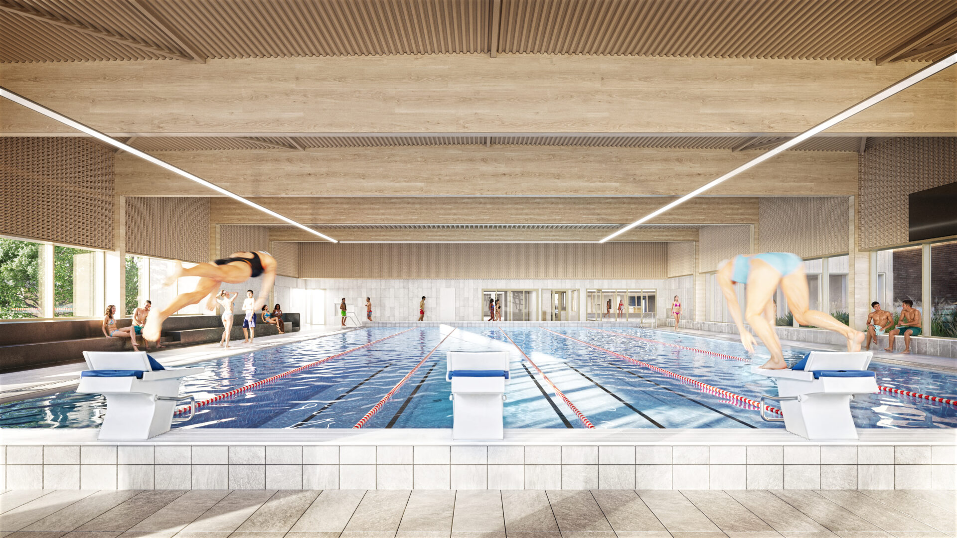 Het zwembad heeft een wedstrijdenbad van 6 x 25 meter, dat ideaal is voor sportieve zwemactiviteiten en trainingen. Daarnaast is er een speciaal doelgroepenbad voor recreatief zwemmen en therapieën, dat toegankelijk is voor een breed scala aan bezoekers, van kinderen tot ouderen en mensen met een beperking.